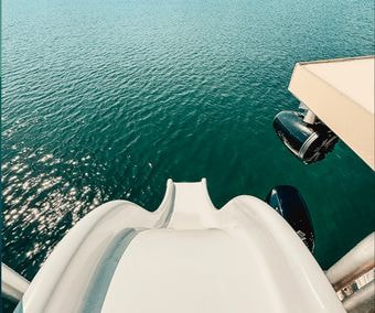 This boat is designed for fun, featuring a thrilling water slide, a massive floating mat for lounging in the lake, and an incredible sound system to keep the energy going. A large cooler stocked with ice is included, so just bring your favorite drinks and snacks. Whether you're celebrating a special occasion or just looking for a great time on the water, this boat has you covered.